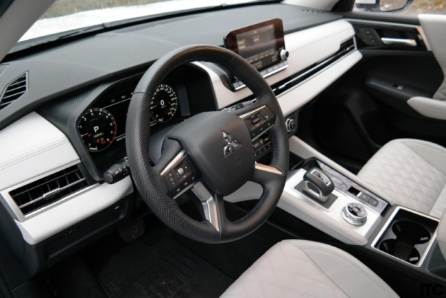 Внутрішній світ нового Mitsubishi Outlander також намагається задавати відчуття солідного та великого автомобіля. На це відчуття працюють великі поверхні та елементи: масивна центральна консоль, горизонтальні лінії передньої панелі, широке кермо. Плюс чимало приємних «дрібниць», починаючи від фізичних органів керування, продовжуючи бездротовою зарядкою, завершуючи розвиненим «кліматом». Другий ряд сидінь - просто чудовий; третій ряд - просто існує. Великий багажник непогано продуманий.